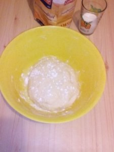 Kevés tejet meglangyosítunk egy teáskanálnyi cukorral,majd belemorzsoljuk és picit elkavarjuk az élesztőt.