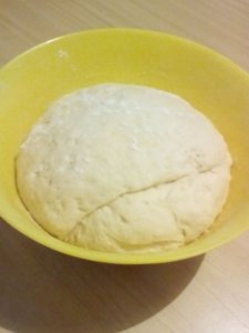 Meghintjük liszttel a tetejét,konyharuhával letakarjuk,kb. 1 órát meleg helyen pihentetjük.