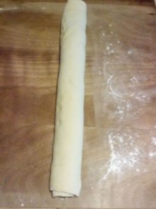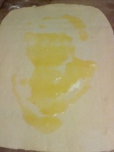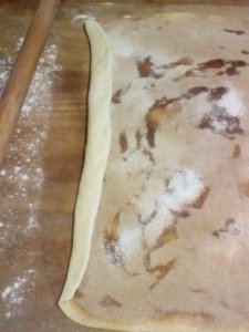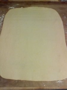 A tésztát lisztezett felületre borítjuk,és vékonyra nyújtjuk.