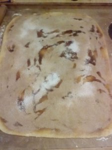 Szórjuk rá egyenletesen a fahéjas keveréket is.