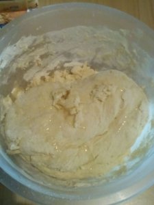 Amikor már összeállt a tésztánk,kb. 1 tk olajat adjunk még hozzá,és ezzel együtt dagasszuk tovább.