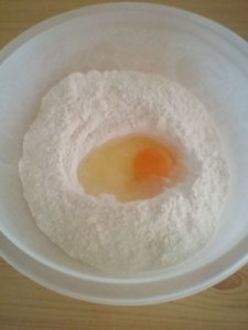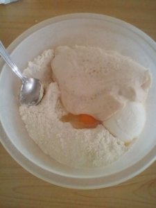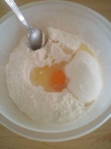 A liszthez hozzáadjuk a sót.A közepébe egy mélyedést csinálunk,és hozzáadjuk a tojást,a tejfölt,az olajat.