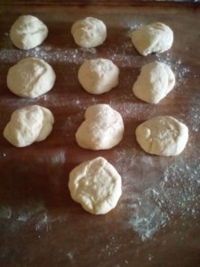 Ezt jól dolgozzuk össze,közben annyi lisztet adjunk hozzá,hogy “jól tudjunk bánni a tésztával” ,tehát ne ragadjon.(ez kb.3 ek-nyi)