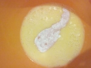 a másikba a tojásokat üssük bele,és kicsit habosítsuk meg,