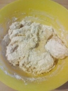 A liszthez hozzáadjuk a csipetnyi sót,cukrot,a 2 cs vaníliás cukrot és egy kevés reszelt citromhéjat.
