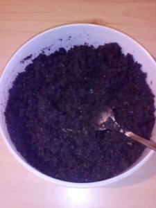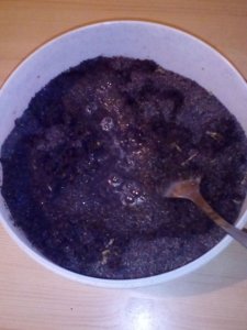 1 dl tejet,ízlés szerint 5-6 ek cukorral langyosítsunk meg,majd fokozatosan adjuk hozzá a mákhoz.