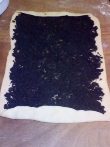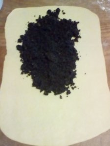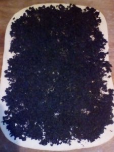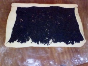 A töltelék felét helyezzük az egyik téglalapra,és egyenletesen oszlassuk el rajta.
