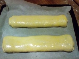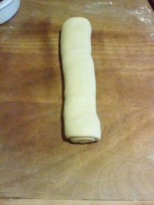 Majd vékony téglalap alakúra nyújtjuk a cipókat.