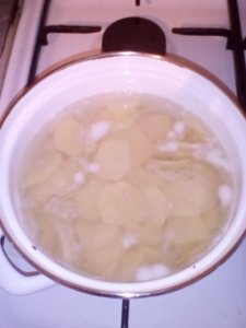 Ha a krumpli megfőtt,leöntjük róla a vizet,és hagyjuk kihűlni.