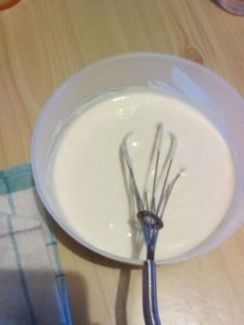Amíg fő a krumpli,elkészítjük a majonézes mártást.