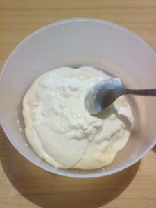 Majd hozzáadunk 3 ek tejfölt,és simára keverjük vele.