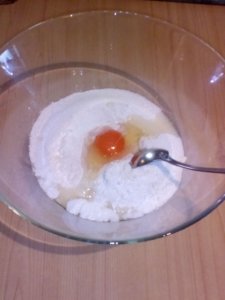 Majd hozzáadunk egy tojást,és kissé átkeverjük az egészet.