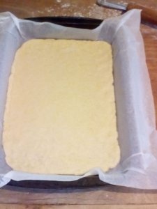 Az egyik lapot sütőpapírral bélelt tepsire helyezzük.