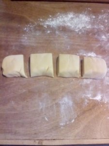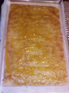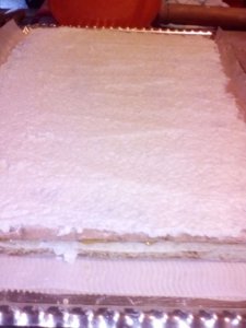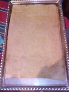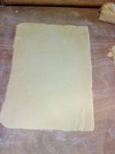 Egyenként (39X24 tepsiméretűre)nyújtjuk.Vékonynak kell lennie.