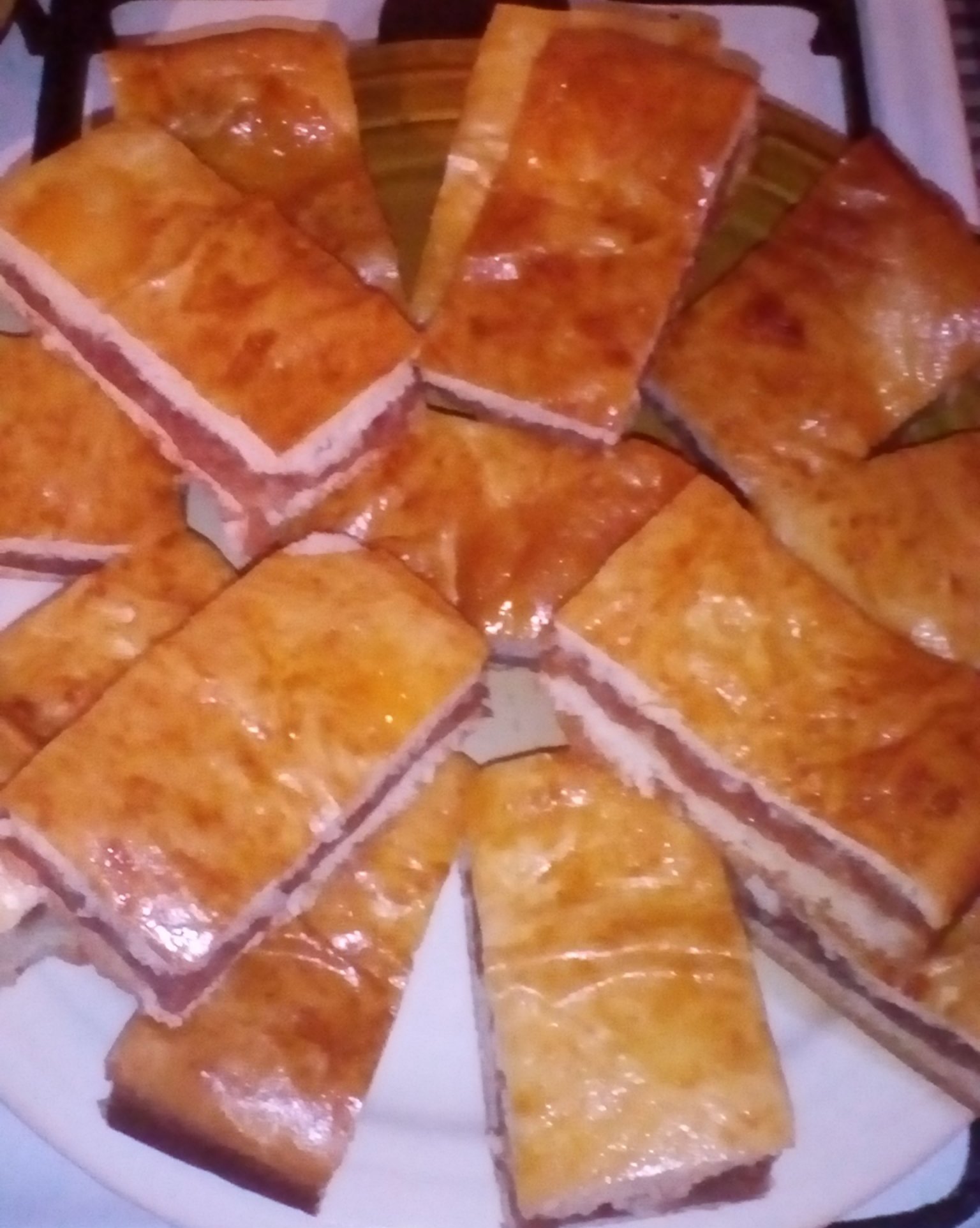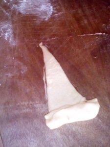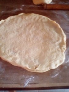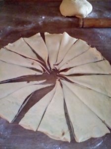 Lisztezett felületre borítjuk,és 4 egyenlő részre osztjuk.