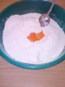 A liszthez hozzáadjuk a sót,porcukrot,vaníliás cukrot.