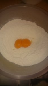 0,5 kg liszthez hozzáadjuk a sót,cukrot,vaníliás cukrot és a tojássárgákat.