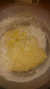 Szükség esetén még lisztezzük,majd kezdjük el összedolgozni ezeket az alapanyagokat,és dagasszuk ki alaposan.