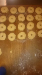Majd kb.1,5 cm vastagra nyújtjuk,és (pogácsaszaggató vagy akár egy pohárral) tetszőleges nagyságúra szaggatjuk.